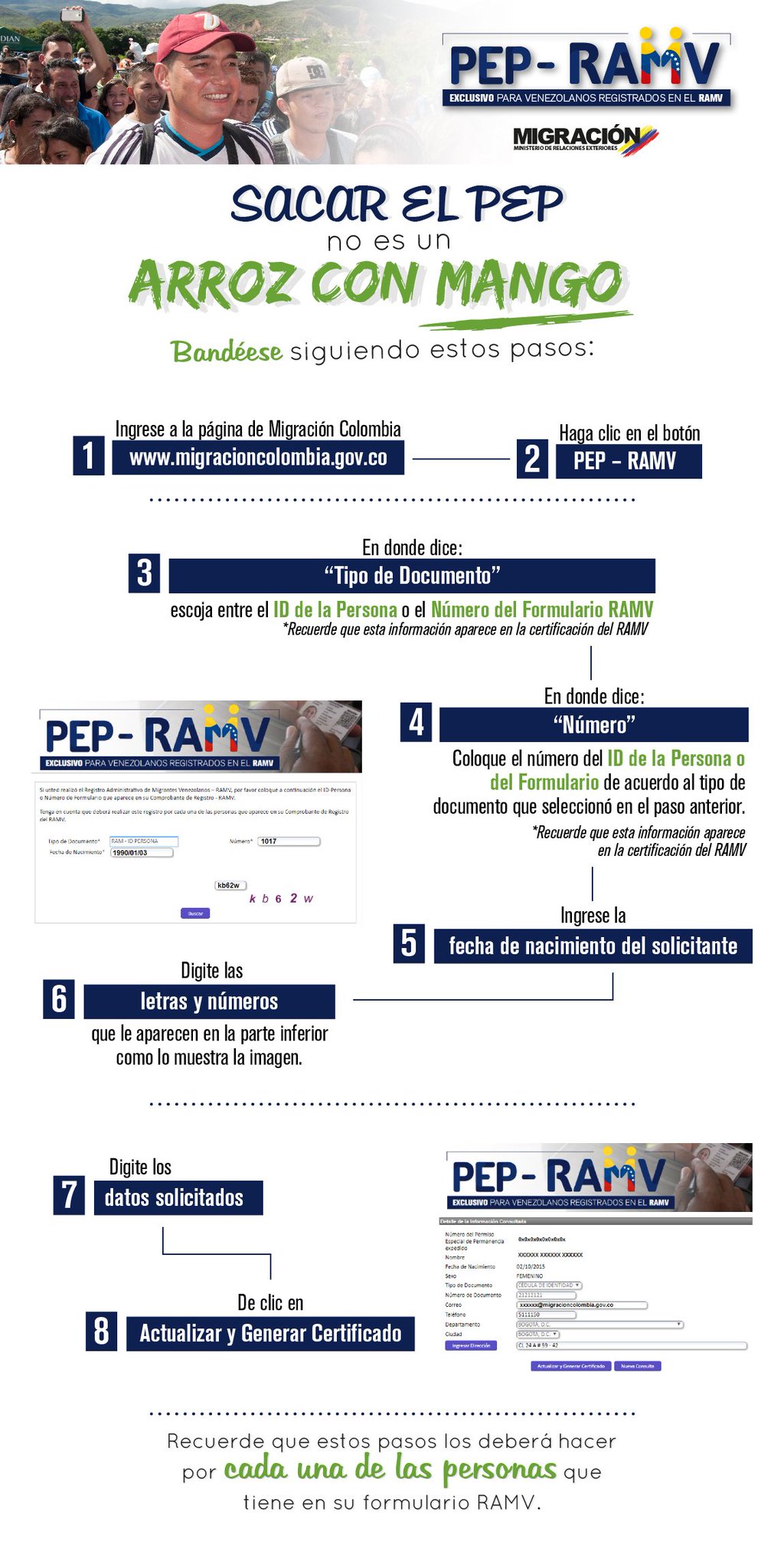 Todas las personas venezolanas que 1. El #pep_ramv te permite permanecer en el país de manera regular hasta por dos años, estudiar #recuerda | el #pep_ramv se otorgó a ciudadanos venezolanos que se encontraban inscritos en el registro administrativo de migrantes venezolanos y que solicitaron el permiso especial de. Последние твиты от migración colombia (@migracioncol). Renovar papeles colombia es un weblog de trámites online en colombia. Pueden solicitar el pep en la fecha que indica el número de formulario o comprobante de registro ramv 4.